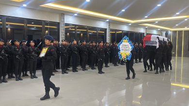 Penghormatan Terakhir: Satbrimob Polda Sulteng Gelar Upacara Pengantaran Jenazah Aipda Hari Prastomo Di Aula Satya Haprabu