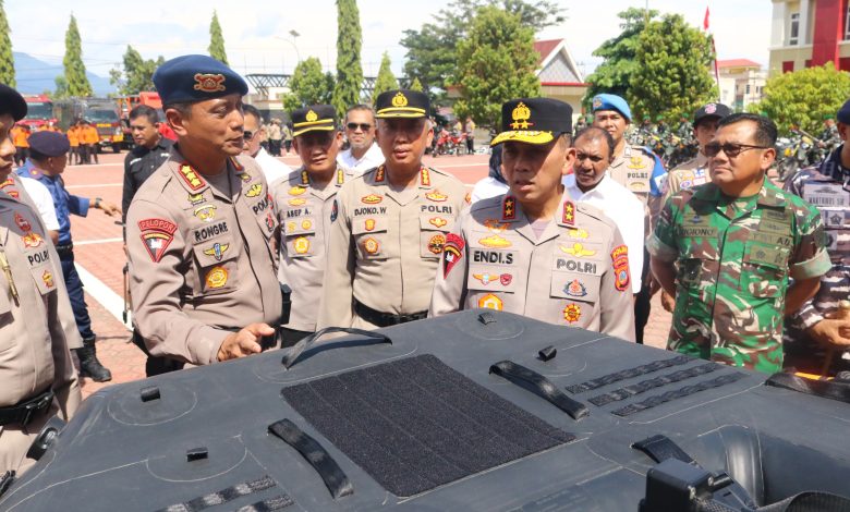 Turut hadir Dansat Brimob Polda Sulteng Kombes Pol Kurniawan Tandi Rongre, S.I.K., M.Si., bersama para pejabat utama Polda Sulteng serta perwakilan dari TNI, BPBD, Basarnas, dan instansi terkait lainnya.