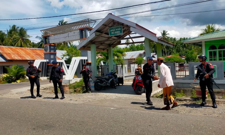 TOUNA – personel Kompi 3 Batalyon B Pelopor, kembali memperkuat kehadiran Polri di tengah masyarakat dengan melaksanakan kegiatan Patroli Religi dan pengamanan area di Masjid Al-Nida, Desa Marobai, Kecamatan Ulubongka, Kabupaten Tojo Una-Una.